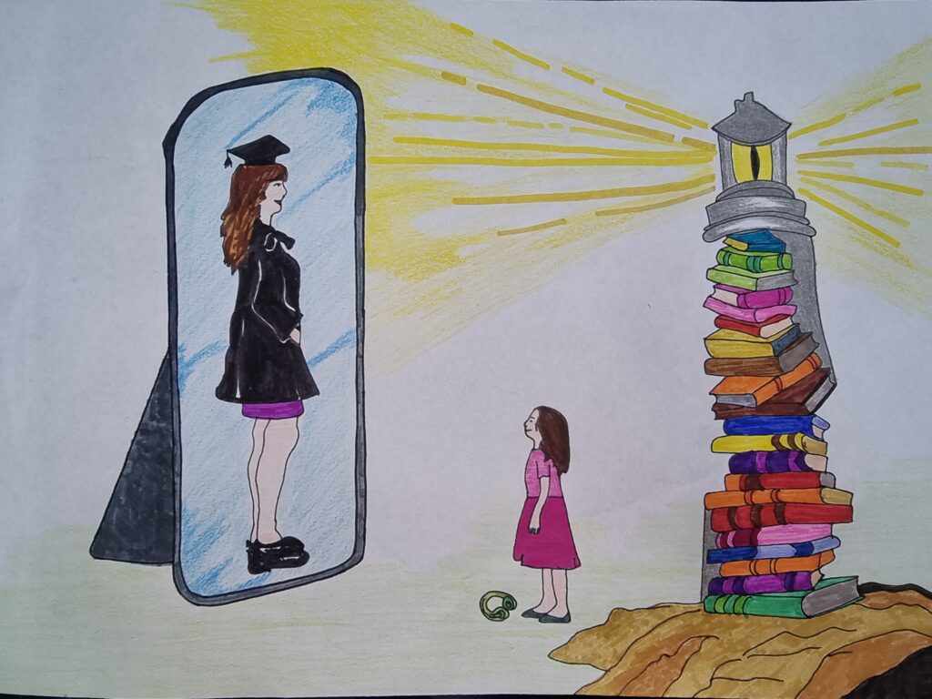 Through this artwork, I aimed to inspire viewers to embrace education as their guiding light toward a brighter future.