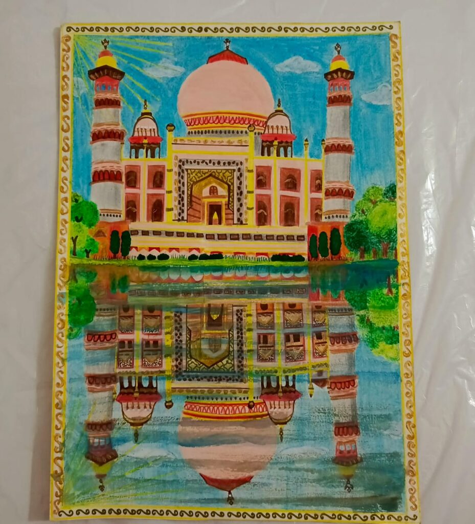I drew a mosque in the water because I wanted to show how beautiful and peaceful it looks. I’ve always been fascinated by Islamic architecture,and I love how the mosque’s design seems to blend perfectly with its surroundings. The mosque is an important part of my culture, where we go to pray. The reflection in this drawing is not only the visual one that we see, but it also shows the reflection of faith and harmony in one’s life. I have used different shades of pencils to make the picture look realistic. I hope people who see my drawing feel calm and happy,and think about the importance of peaceful places in our lives.
