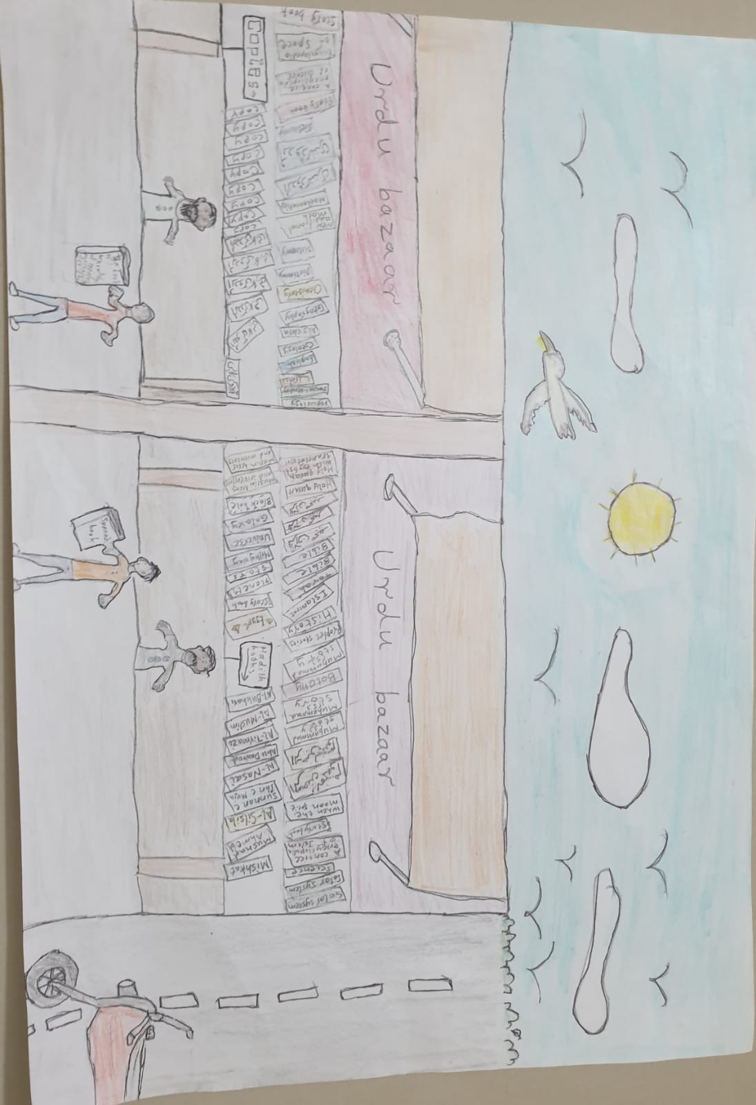 In my city there are a lot of famous bazaars and one of them is Urdu Bazaar which is in Sadar. It is an open-market. I drew it because it is famous and I really enjoyed myself when I visited it for the first time. I had never visited this bazaar and that’s why I decided to go there before drawing it. This bazaar mainly sells books and other school items like stationery, school bags, etc. This is the reason why it is really famous among students. This bazaar gives an opportunity to the students to sell and buy their books. This is a great blessing to the people who like to get educated but can’t afford expensive books, they can simply buy second-handed books from here which saves a lot of money.This is a source to promote education and also employs many people who want to work. In conclusion, due to this bazaar many people are benefitted.