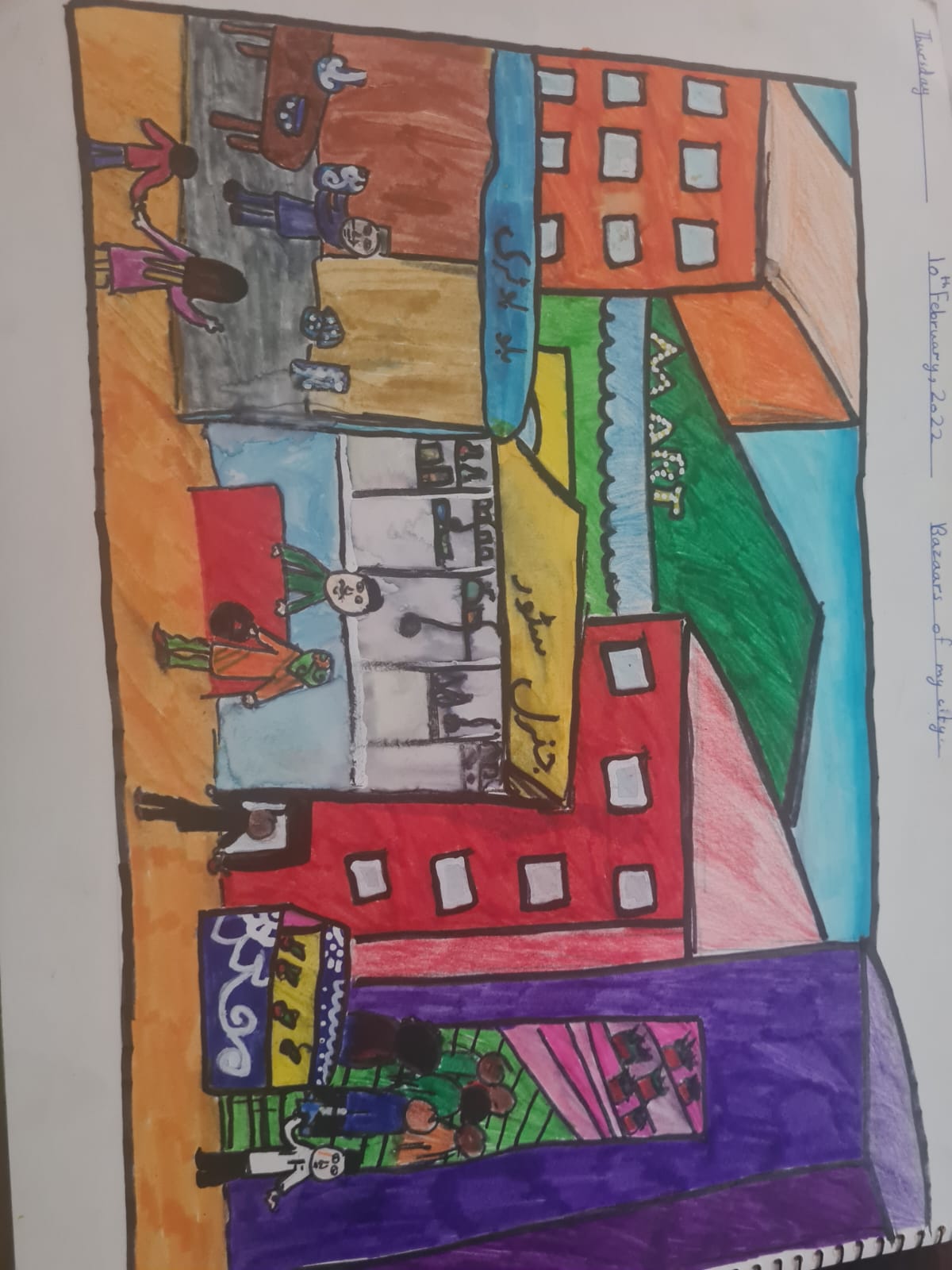 My master piece is about a picture of a bazaar. I used paint brush markers to color it.