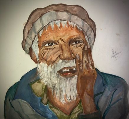 This is a painted version of a picture clicked by me in North. This old-man was sitting on the footpath smiling and giggling, enjoying his life. He gave a perfect example of celebrating every age, finding happiness in your imperfections and spreading positivity through your smile. He may not be a wealthy person, but his happiness was worth a million.