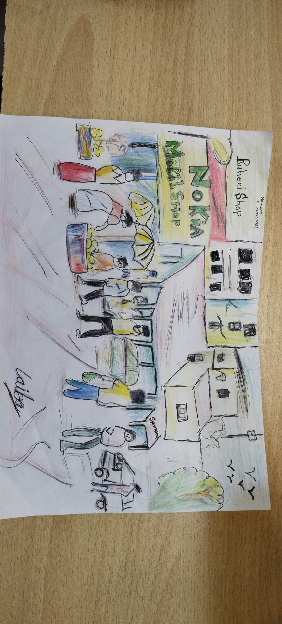 My drawing is capturing a view of one of the Karachi’s business street. Where selling and buying is going from both of posh buildings, food, fruits shops, showrooms to normal regular street hawkers which is portraying that how economically friendly city it is that offers entertainment and luxuries to almost all category people from rich to poor in highly expensive to highly cheap rates.
